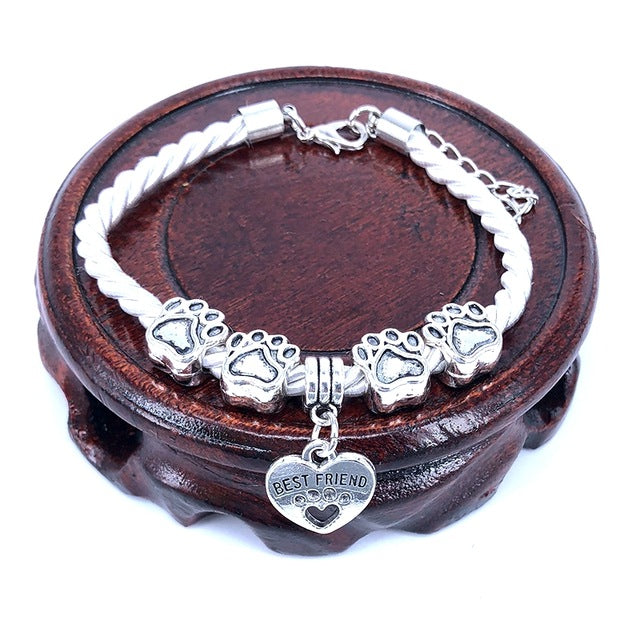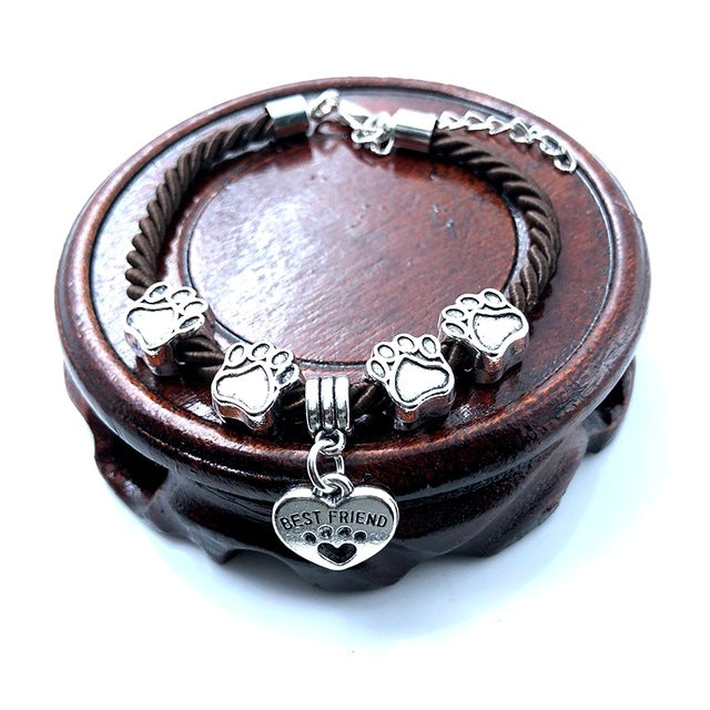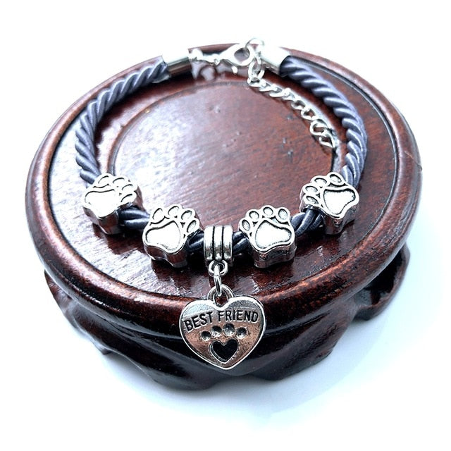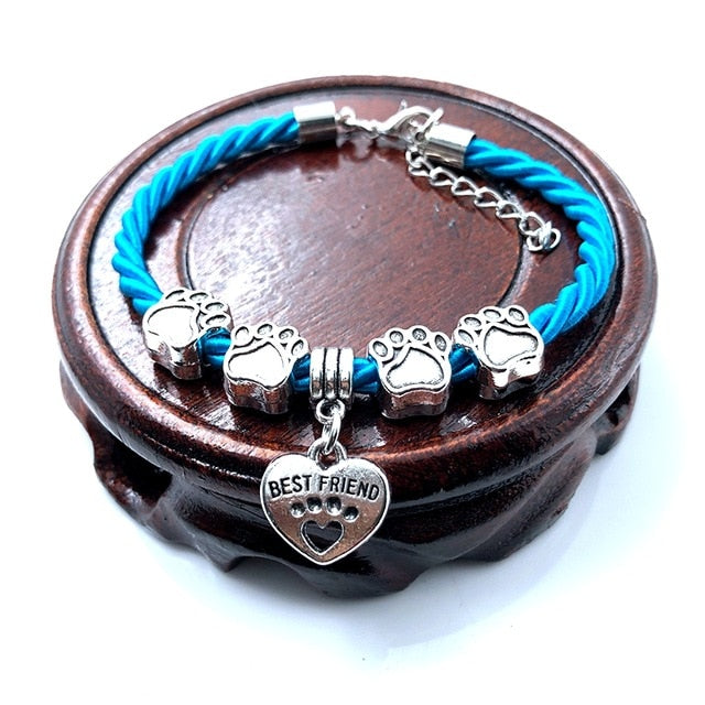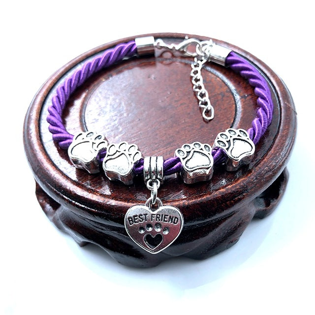Beautiful color rope chain and dog pow charm bracelet for your loved one .